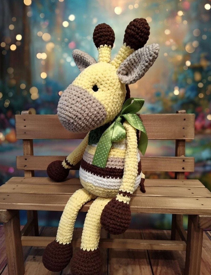 Honorata – żyrafa, która nigdzie się nie spieszy, wszystko ogarnia na spokojnie i zawsze ma czas na przytulanie. Jej długie ręce i nogi są stworzone po to, żeby idealnie pasowały do małych rączek – do tulenia, noszenia, ciągnięcia za sobą i wspólnych drzemek.